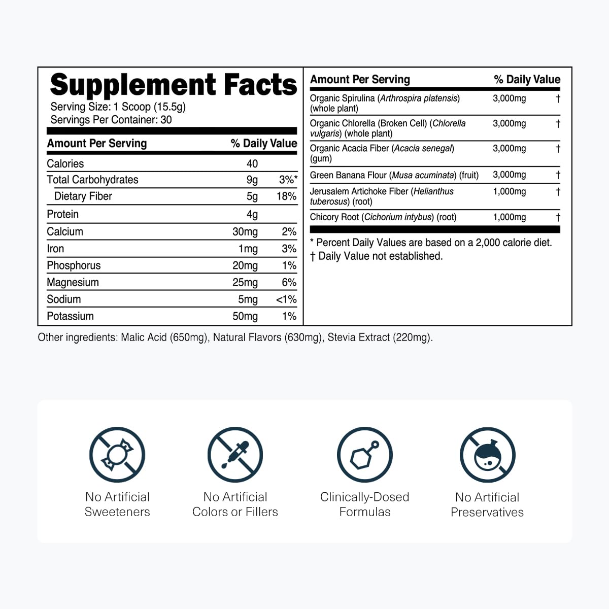 - Natural Detoxification Support: Harnessing the detoxifying potential of spirulina, chlorella, and chlorophyll, our Prebiotic Greens synergistically facilitate the excretion of xenobiotics and heavy metals, augmenting the body's innate detoxification pathways for enhanced physiological purity.